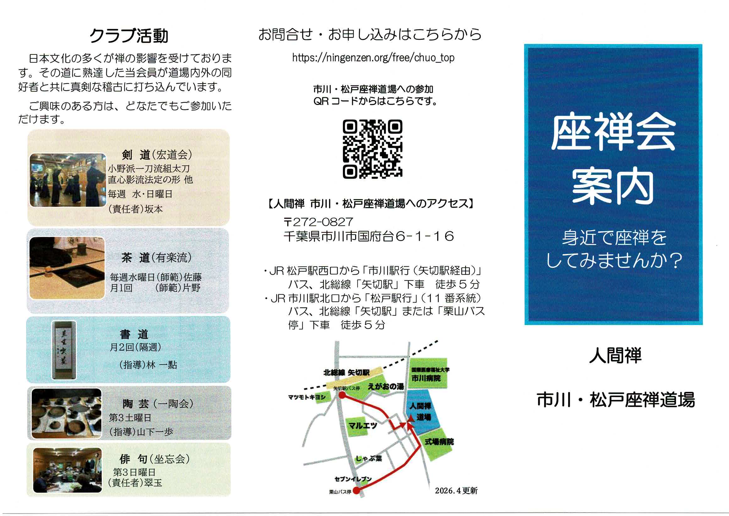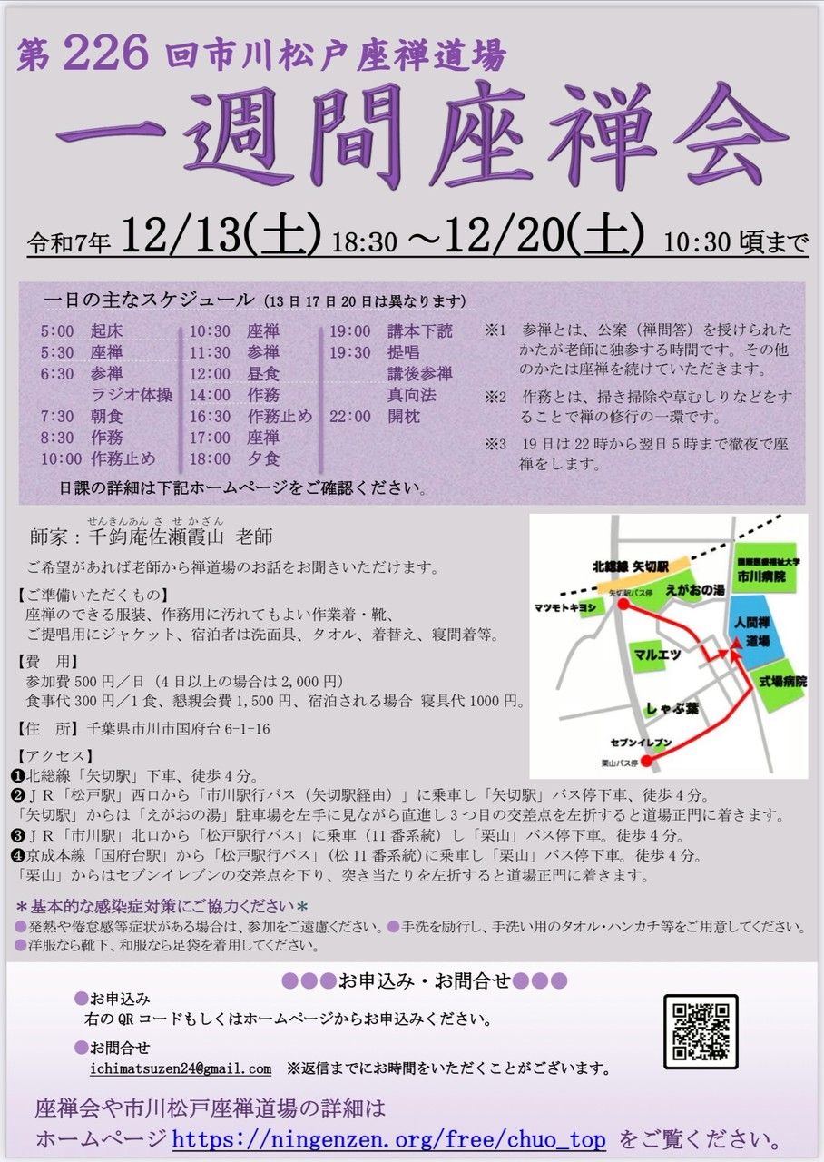 ◇座禅会のご案内 市川松戸座禅道場内及び周辺地域での座禅会です。