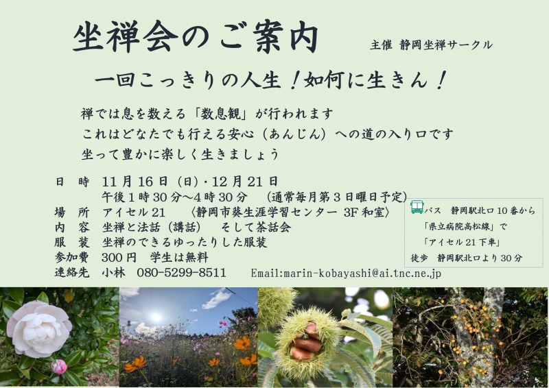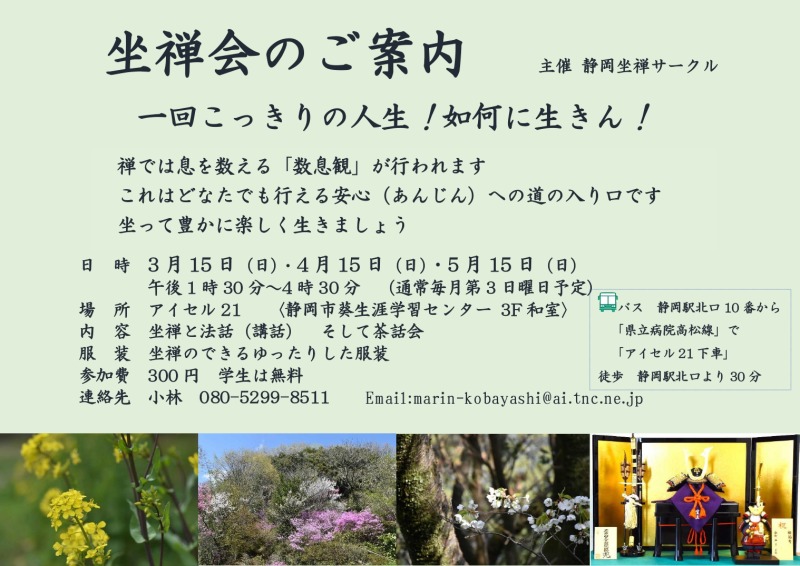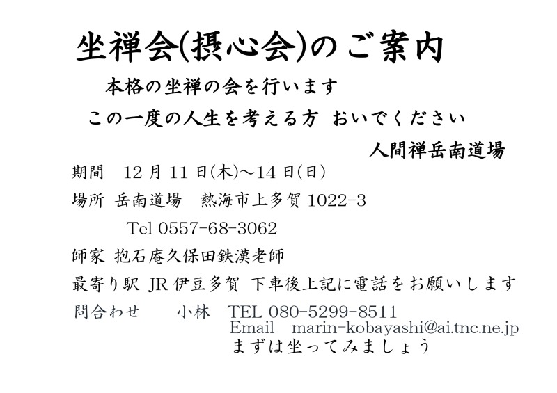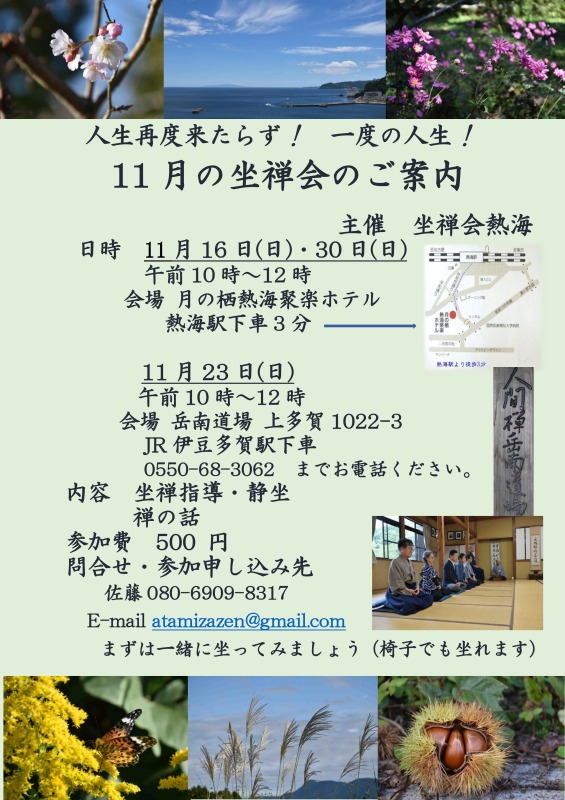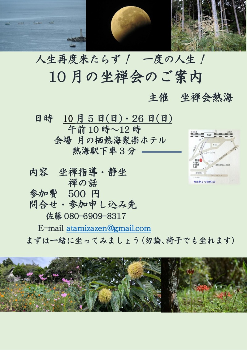 連絡・問い合わせ先 : 坐禅会熱海 080-6909-8317 佐藤