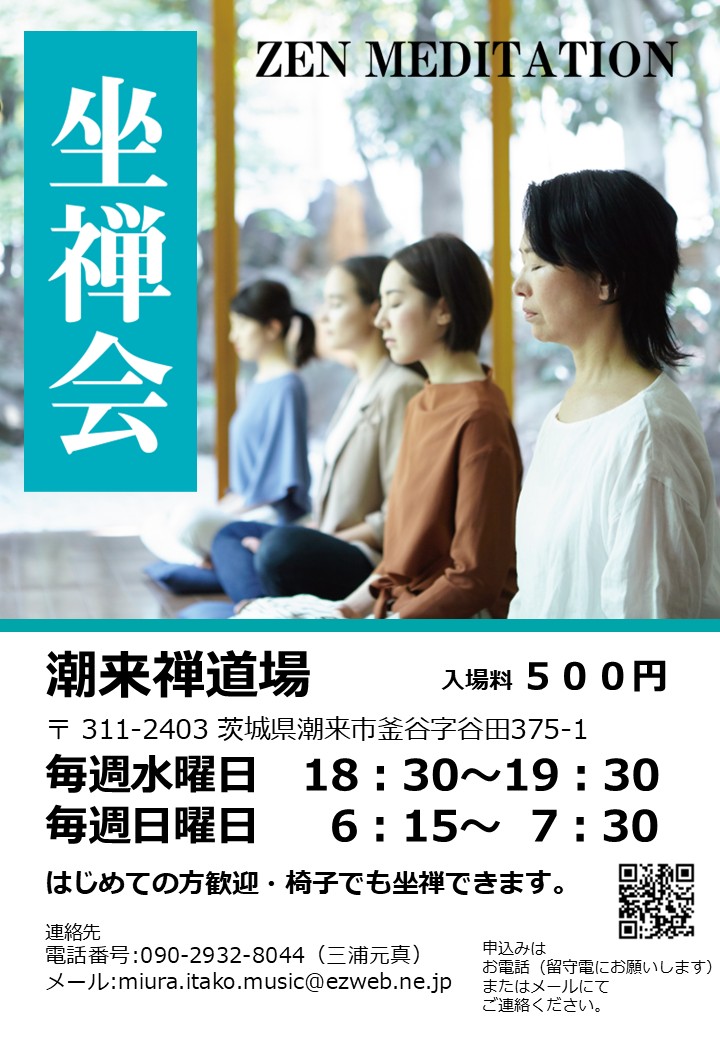 潮来座禅道場(水曜日18:30から、日曜日①6:15~ ②8:00~参加費:500円/1ヶ月)