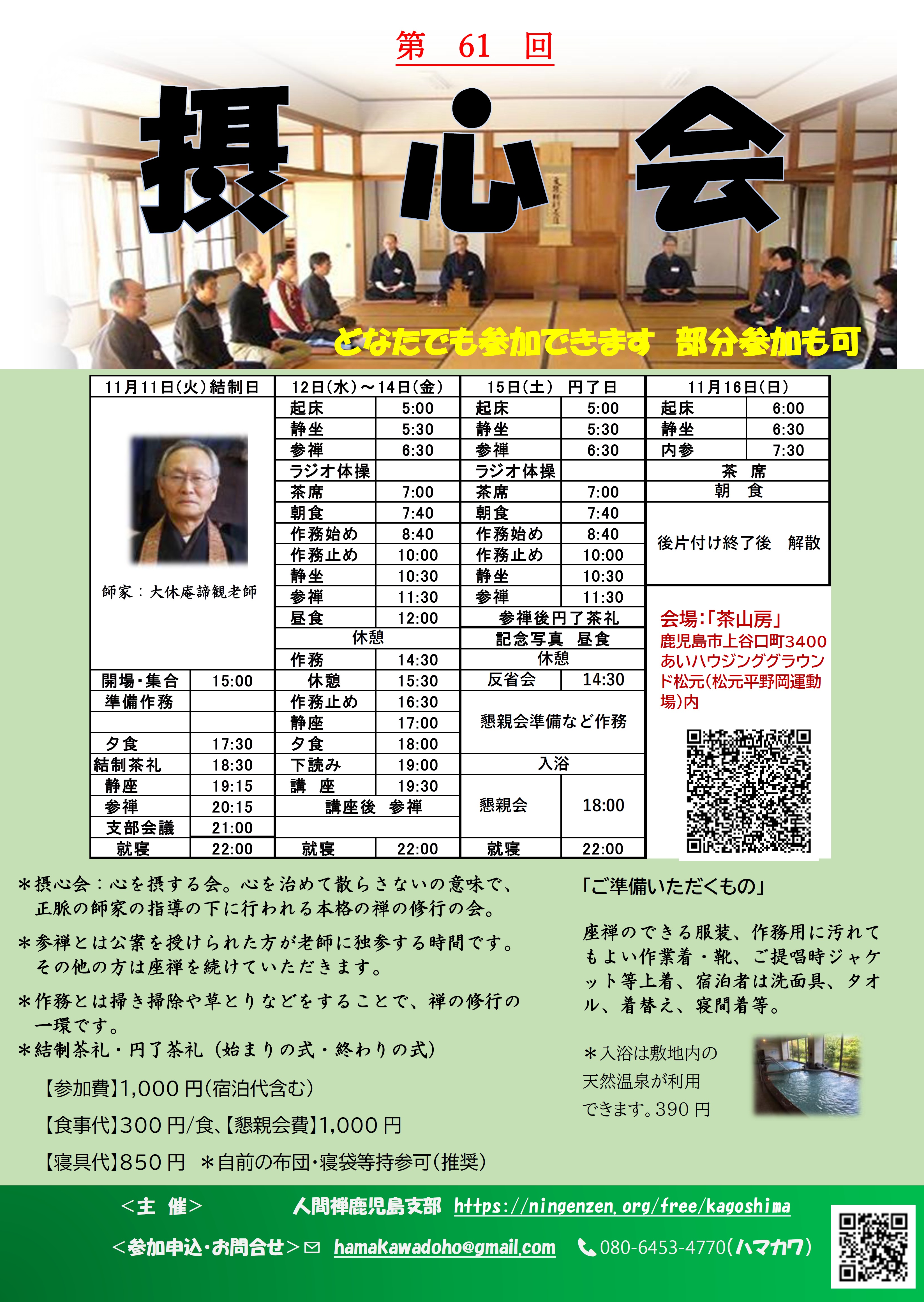 第61回摂心会 11月11日~15日 同上 大休庵老師