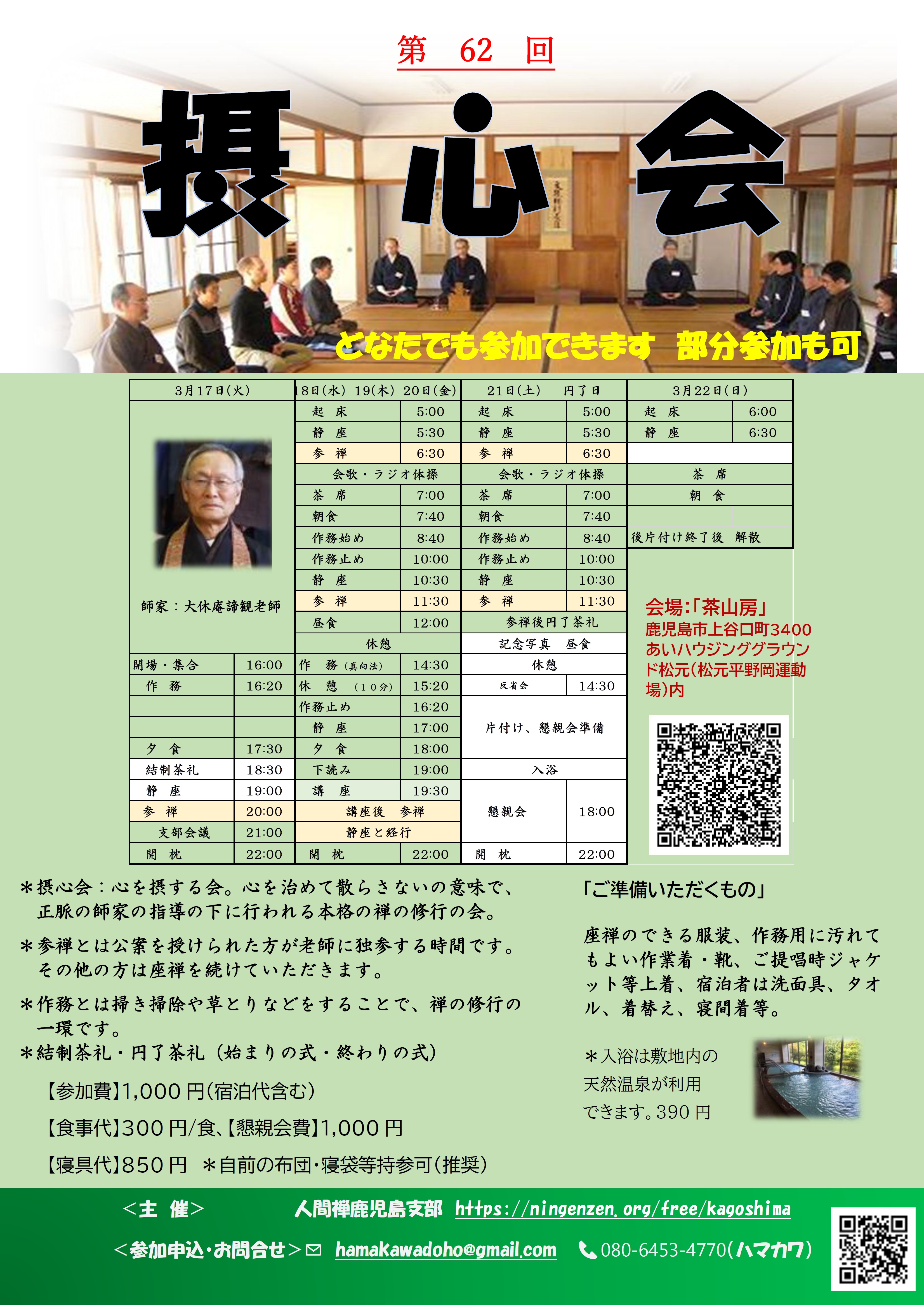 第62回摂心会 3月17 日~22日 茶山房 大休庵老師