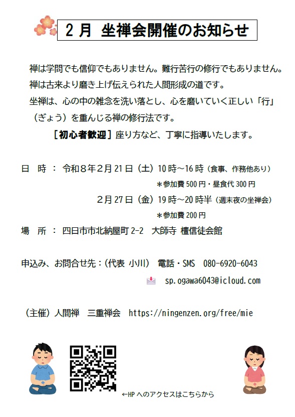 080-6920-6043(四日市・桑名静坐会担当:小川) |