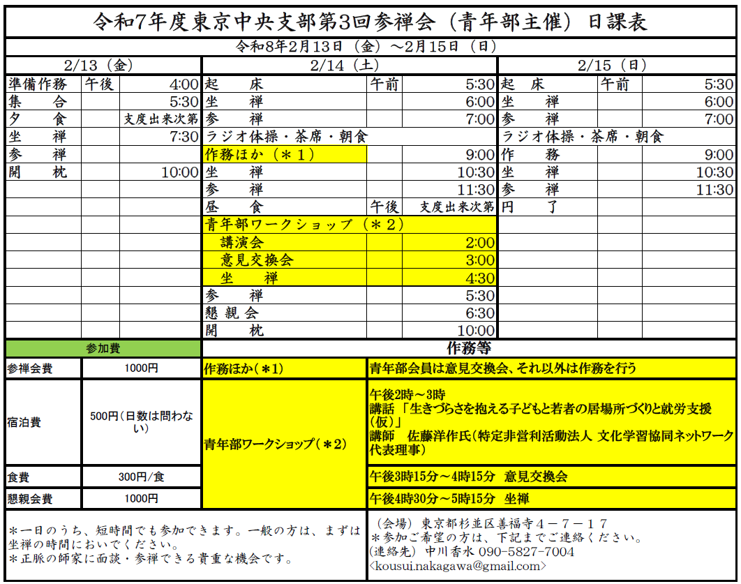 2026年 2/13㈮~15㈰ 参禅会