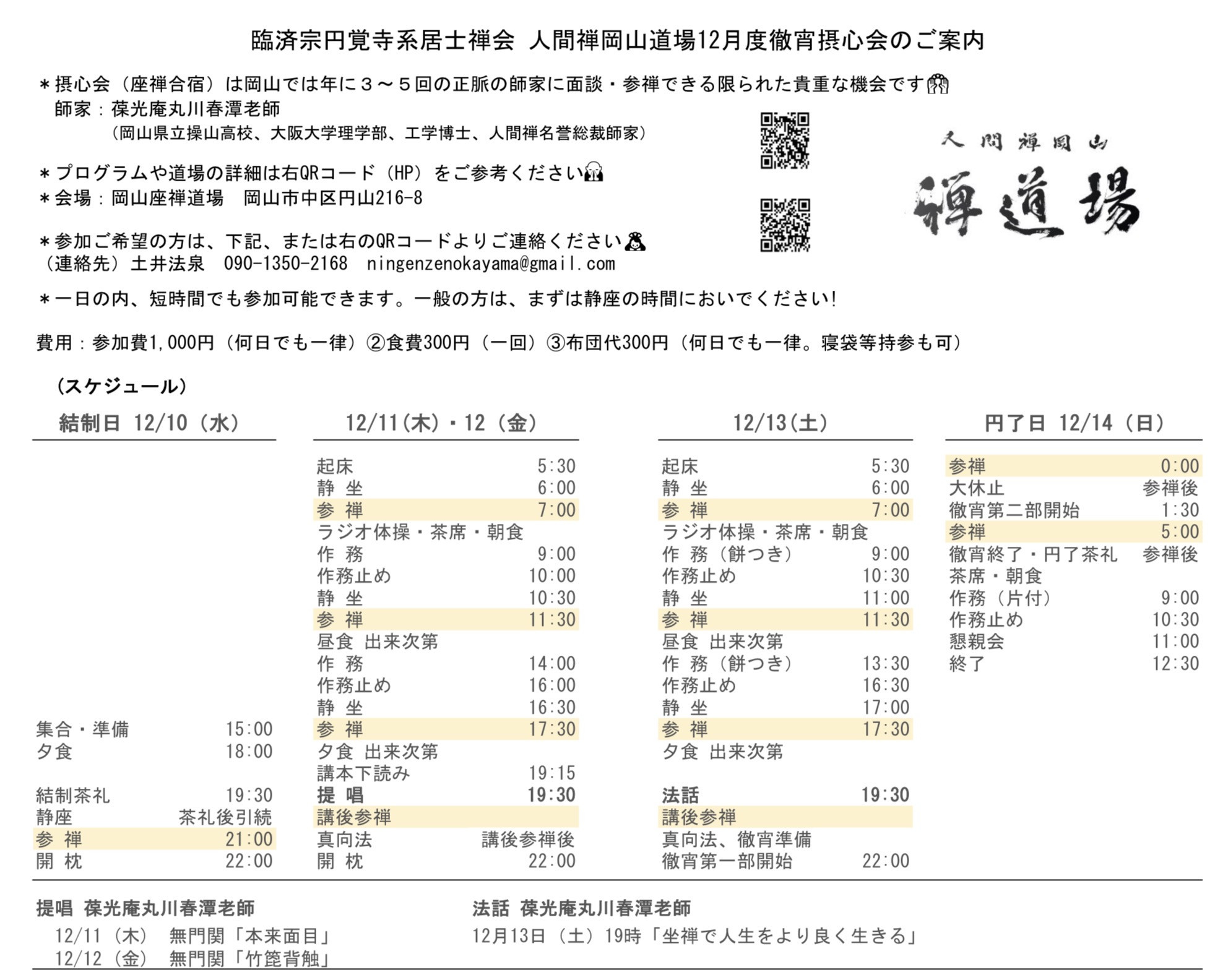 岡山で正脈の師家に参禅できる年3〜5回の限られた貴重な機会です。