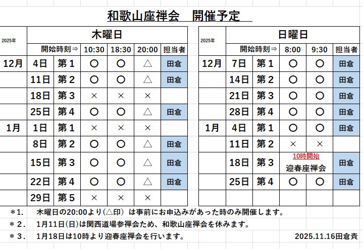 会 場: 和歌山座禅道場